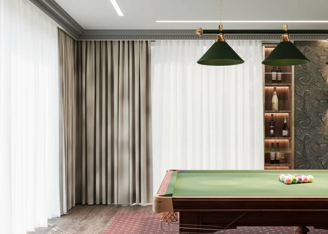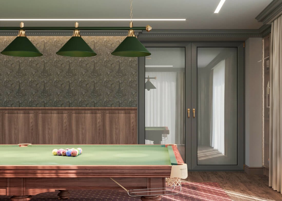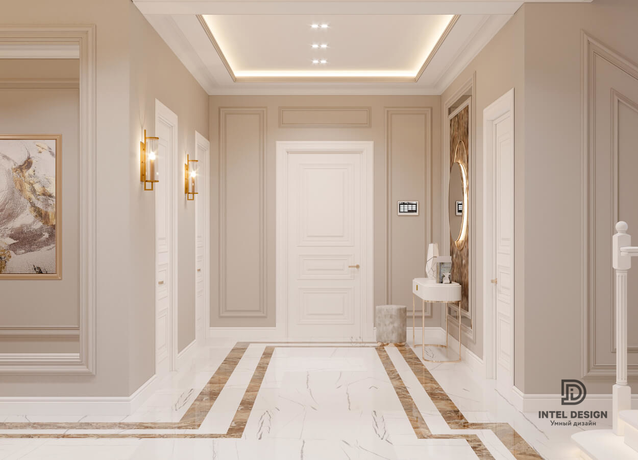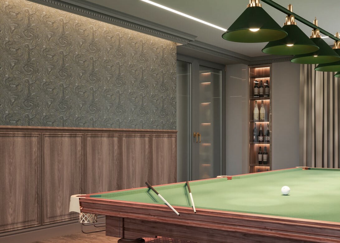 Требовалось разработать светлый интерьер в стиле современной классики, чтобы он сочетал в себе одновременно уют и удобство для семьи из 4 человек. Помимо спален, кухни-гостиной, холлов и санузлов, разработан дизайн бильярдной.