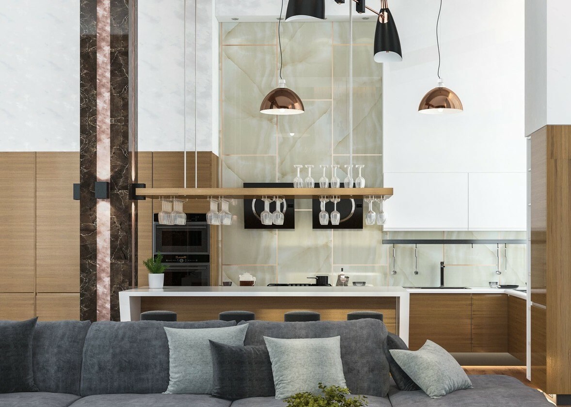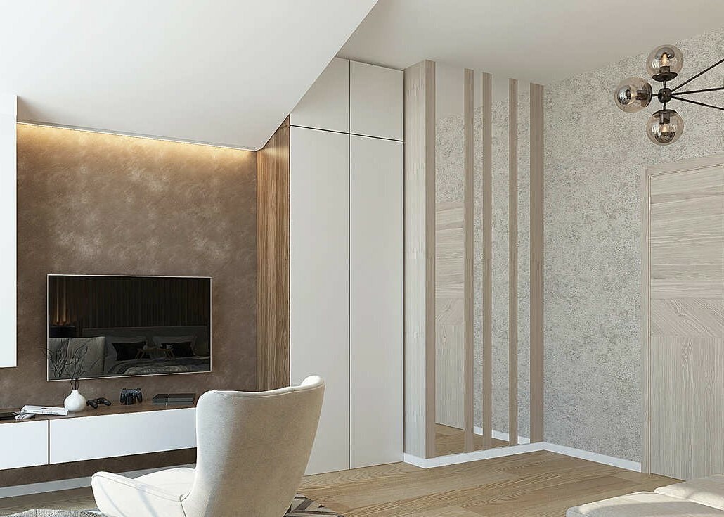 Главной задачей к созданию этого интерьера служило желание заказчиков создать современную резиденцию с применением натуральных и экологичных материалов.